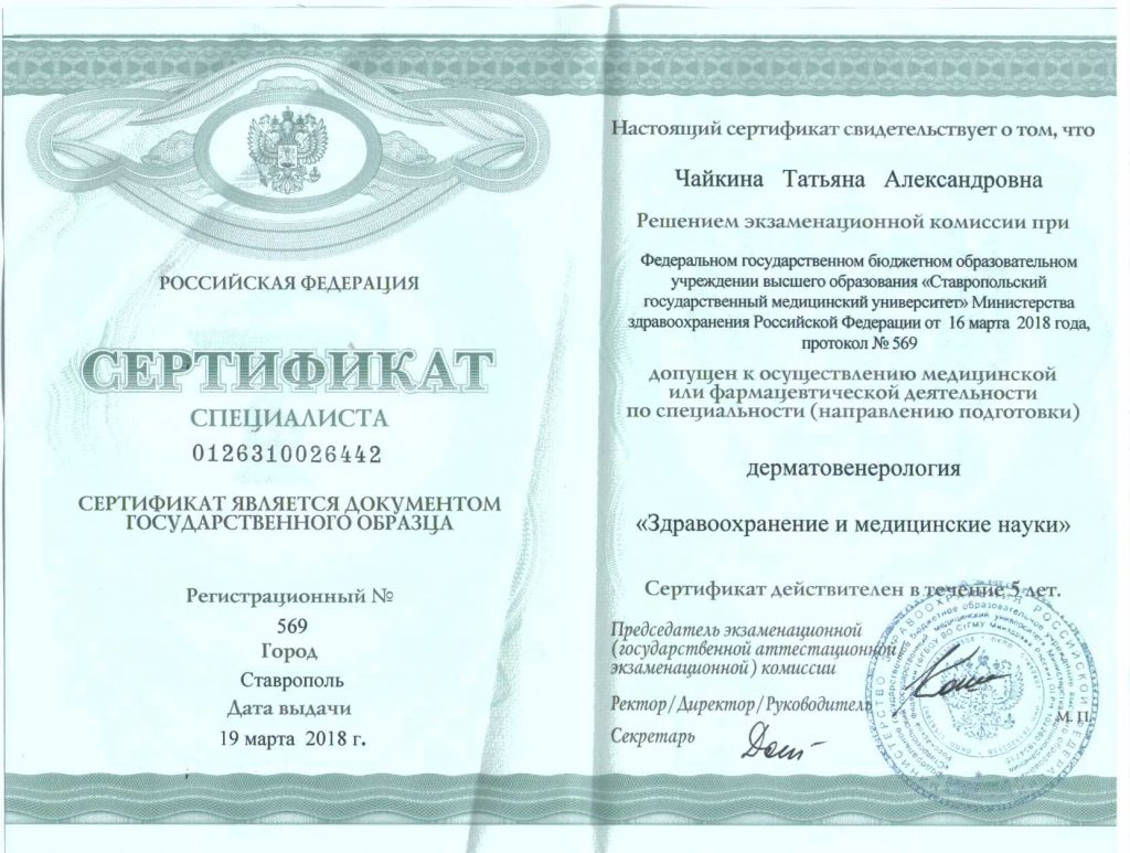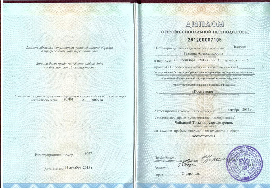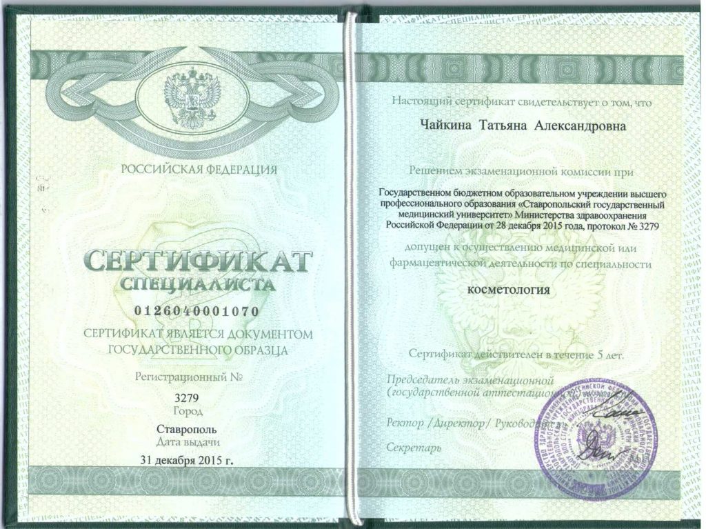 Косметология — сертификат специалиста