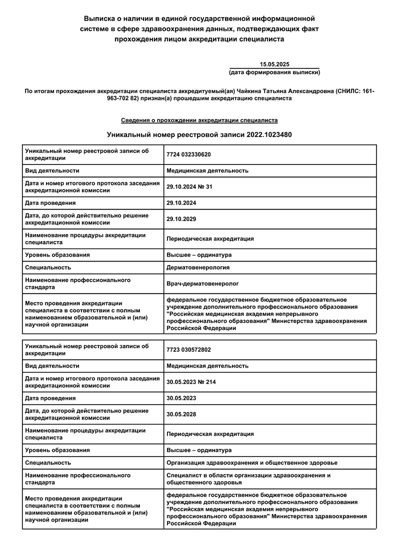 Дерматовенерология — присвоение высшей категории
