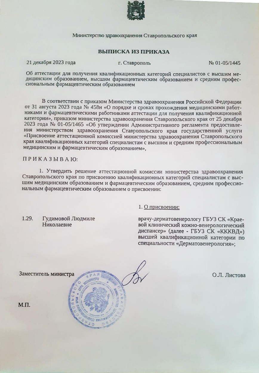 Дерматовенерология — Высшая категория